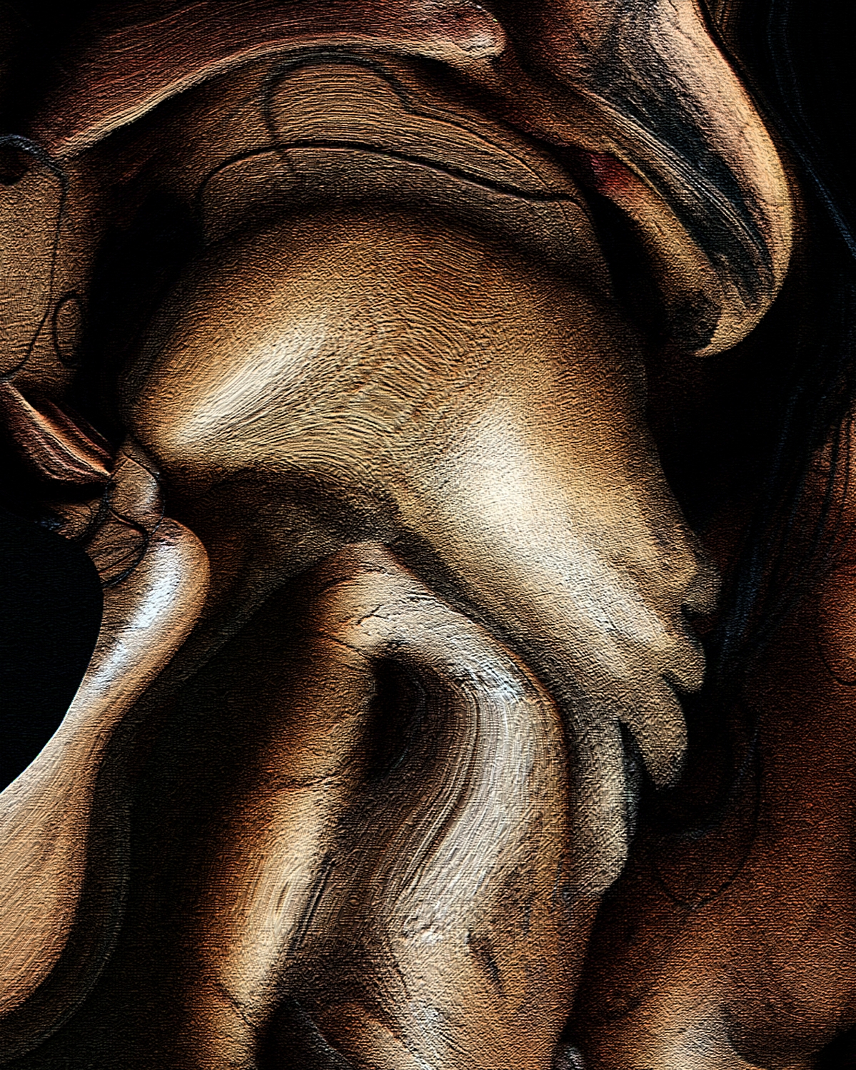 Le deuxieme lot montre des présences hybrides, parfois proches du squelette, du masque, de la sculpture. Les corps semblent en perpétuelle métamorphose. On y perçoit des danses déformées, des créatures en formation ou en dissolution. Ce sont des identités mouvantes, parfois monstrueuses, mais toujours profondément humaines. La matière y devient plus brute, plus tranchée, parfois troublante.